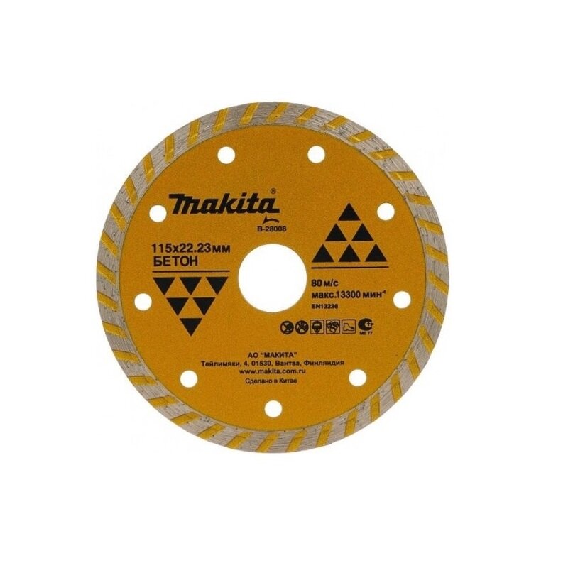 Алмазный диск Makita сплошной Турбо по бетону 115x22, 23x2x7 мм, B-28008