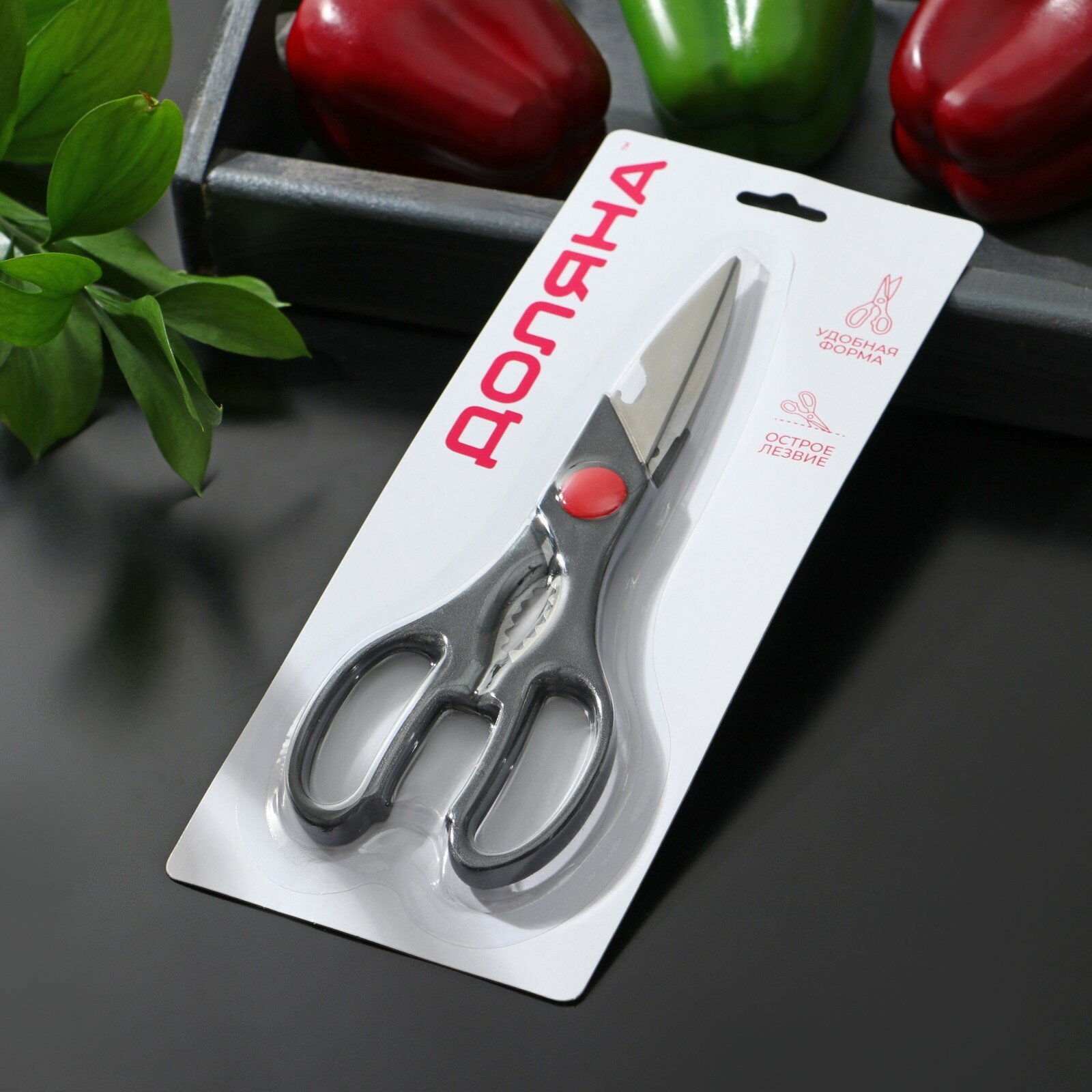 Ножницы кухонные Доляна «Драйв», 22 см, с открывалкой для бутылки, цвет микс