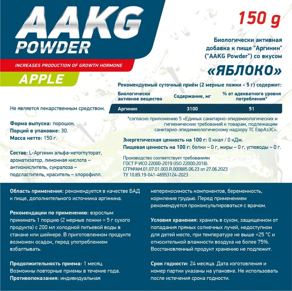 AAKG Powder 150 gr, 30 порции(й), яблоко