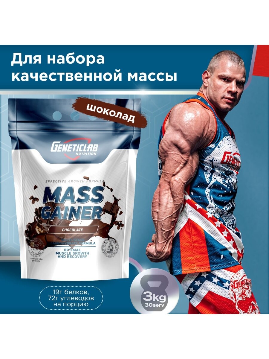 Купить GeneticLab Nutrition MASS GAINER 3000 г Шоколад