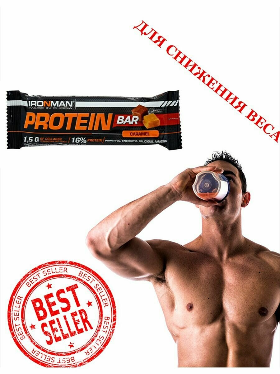 Россия "IRONMAN" Батончик "Protein Bar" с коллагеном, 50 г (Карамель/ тёмная глазурь)
