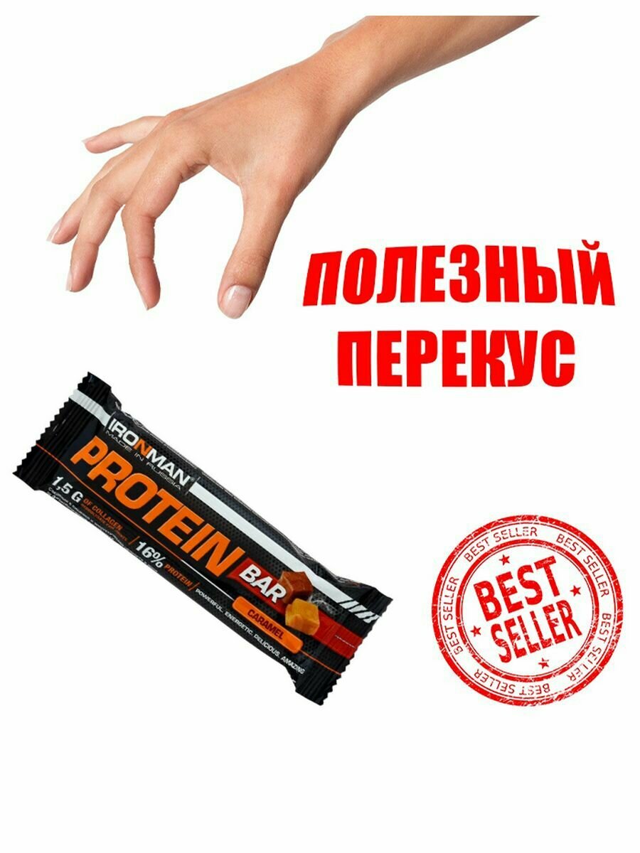 IRONMAN Россия "IRONMAN" Батончик "Protein Bar" с коллагеном, 50 г (Карамель/ тёмная глазурь)