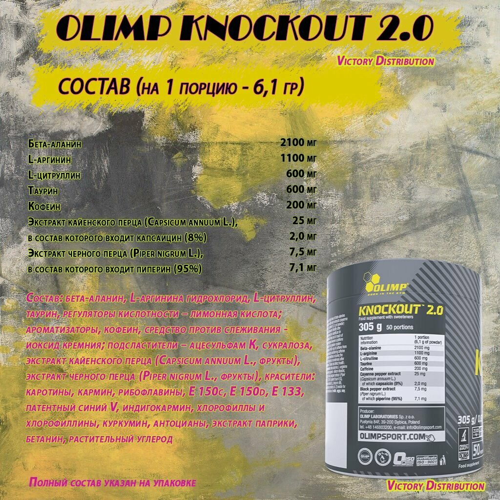 Предтренировочный комплекс с кофеином OLIMP KNOCKOUT 2.0, 305 г. Удар пузыря