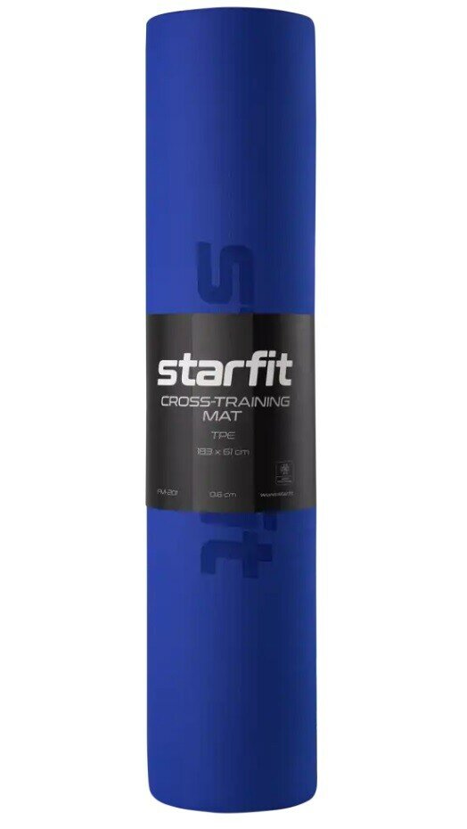 Коврик для йоги и фитнеса Starfit FM-201 TPE, 0,6 см, 183x61 см, синий/темно-синий