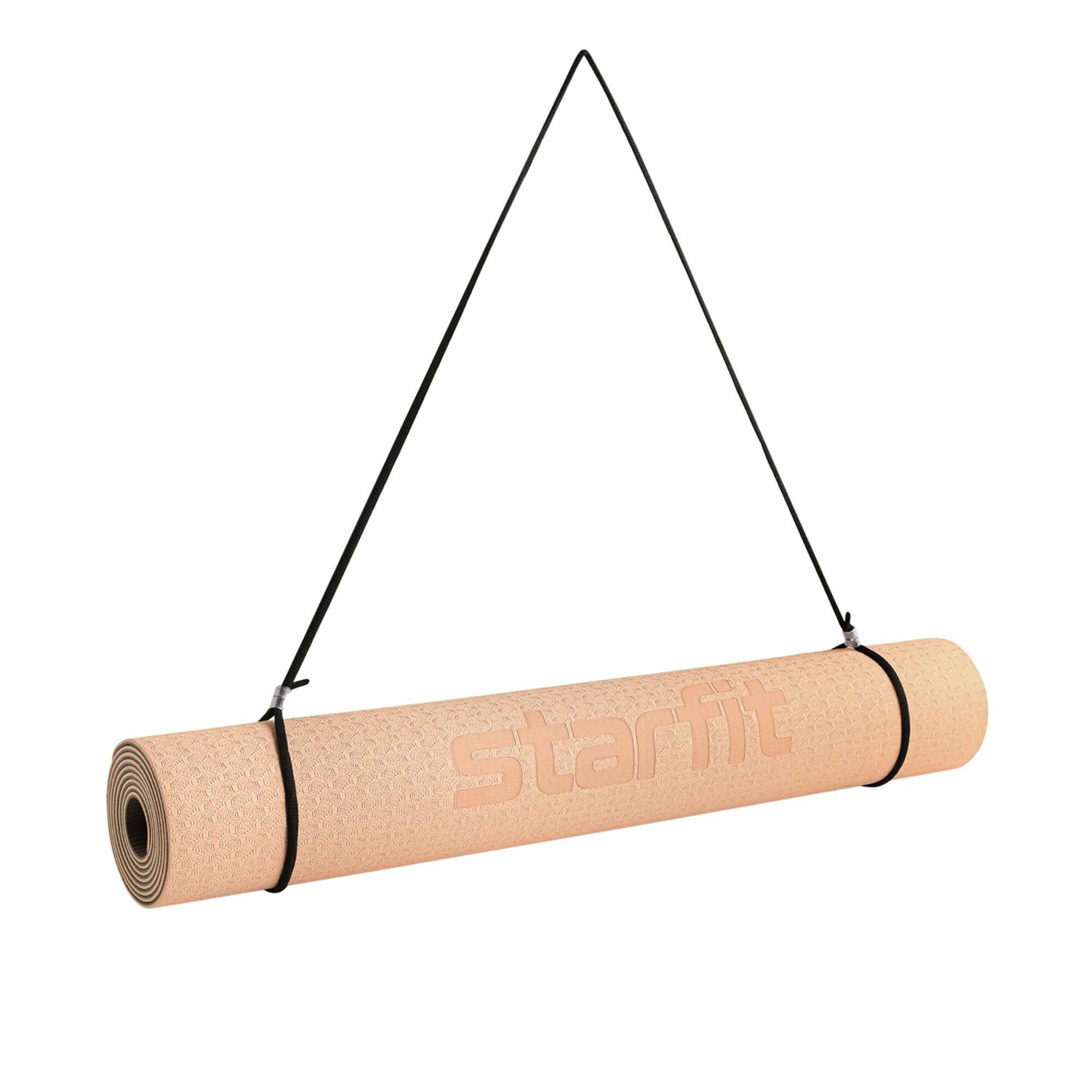 Коврик для йоги и фитнеса STARFIT FM-201,TPE, 183х61 см персиковый/серый 0.4 см