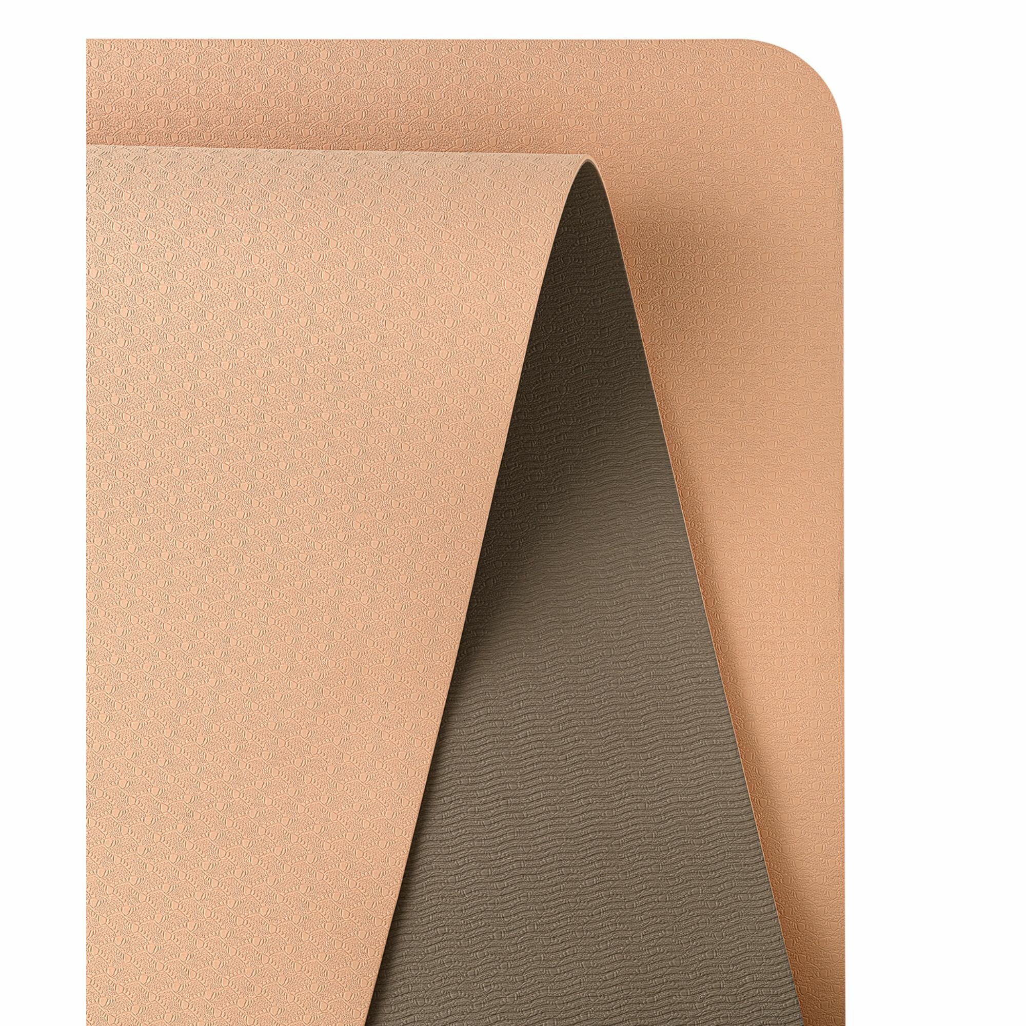 Коврик для йоги и фитнеса FM-201, TPE, 183x61x0,4 см, персиковый/серый