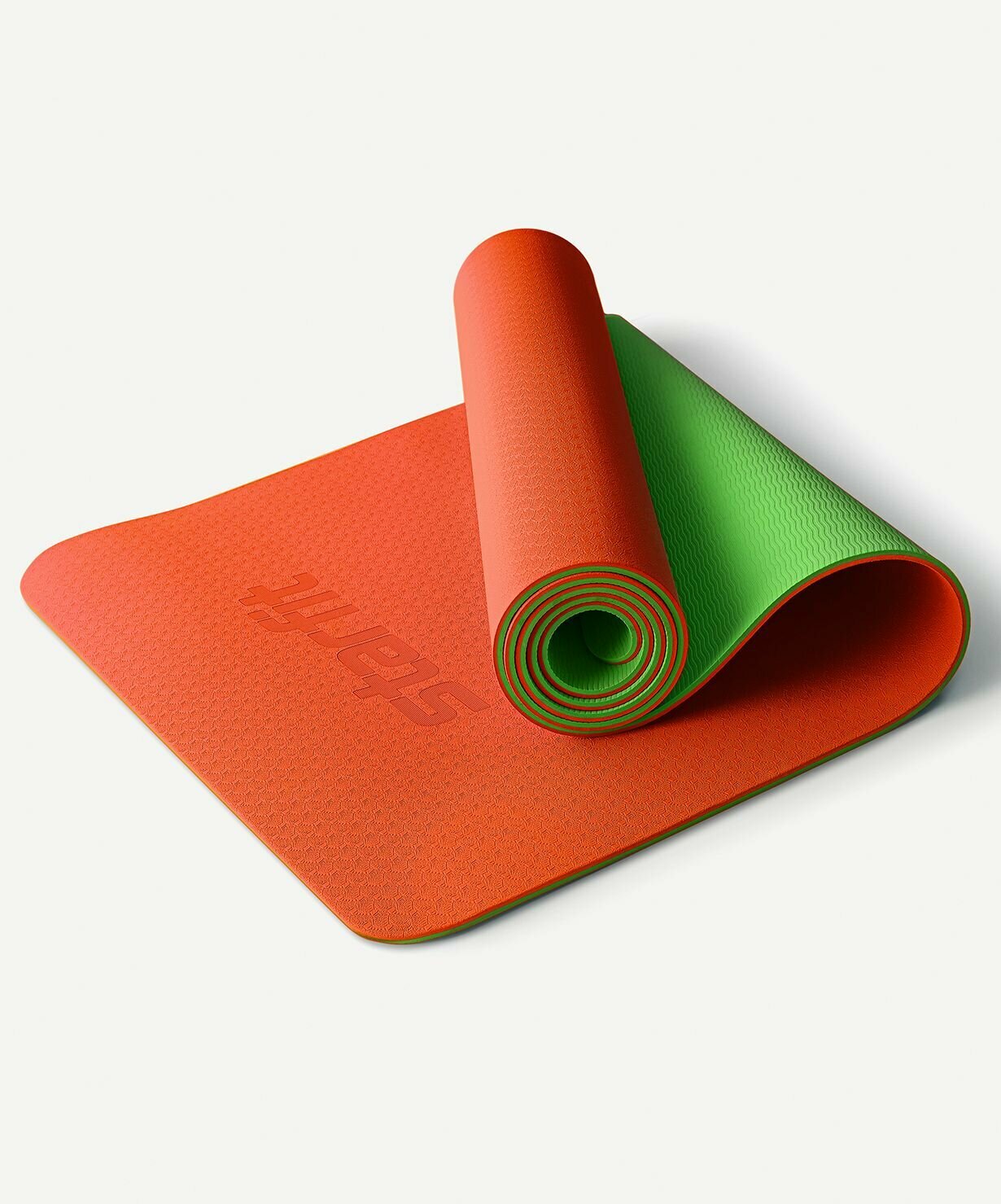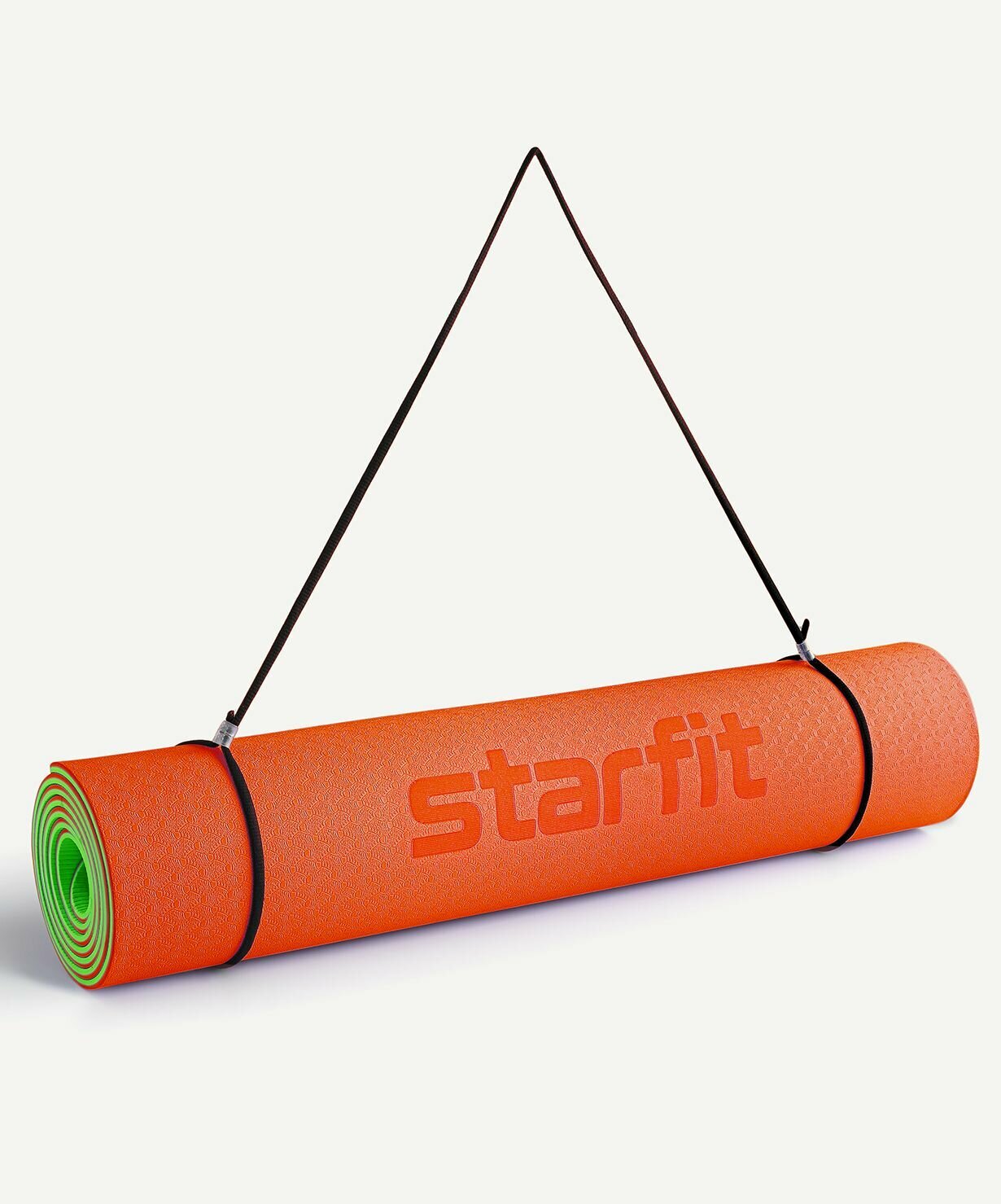 Купить Коврик для йоги и фитнеса STARFIT FM-201, TPE, 183x61x0,4 см, оранжевый/зеленый с шнурком для переноски