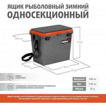 Ящик рыболовный зимний Helios односекционный серый/оранжевый (hs-ib-19-go-1) .