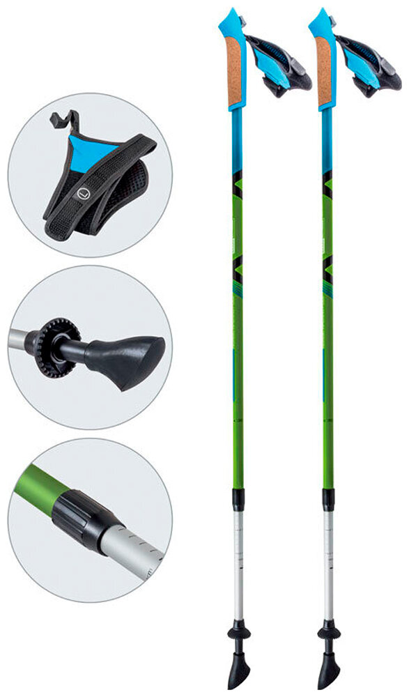 Палки для скандинавской ходьбы ECOS Nordic регулируемые 85-135 см, двухсекционные, алюминиевые, 1 пара, зеленые
