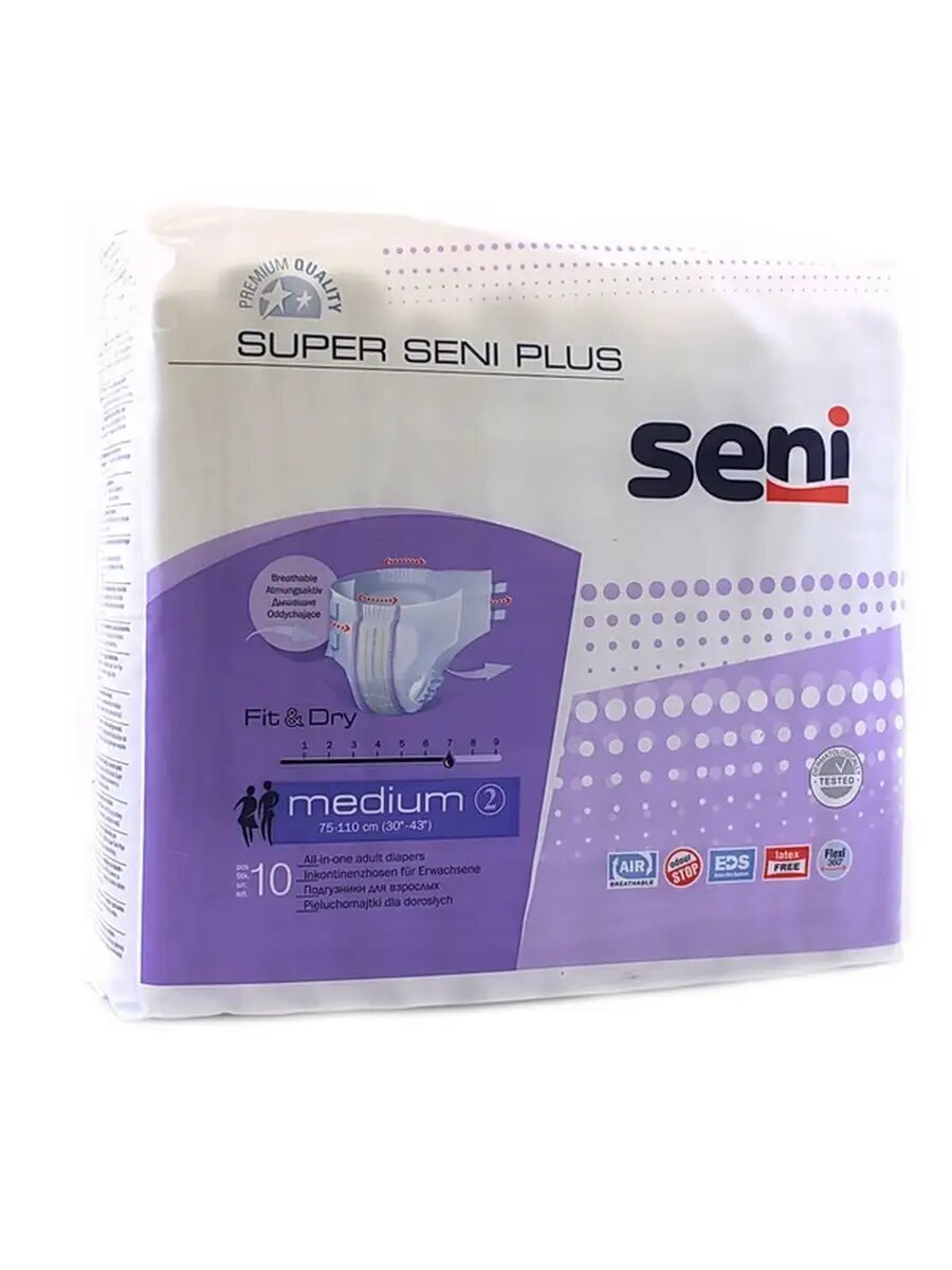 Seni Подгузники для взрослых Super Plus, 75-110 см., M (10 шт.)