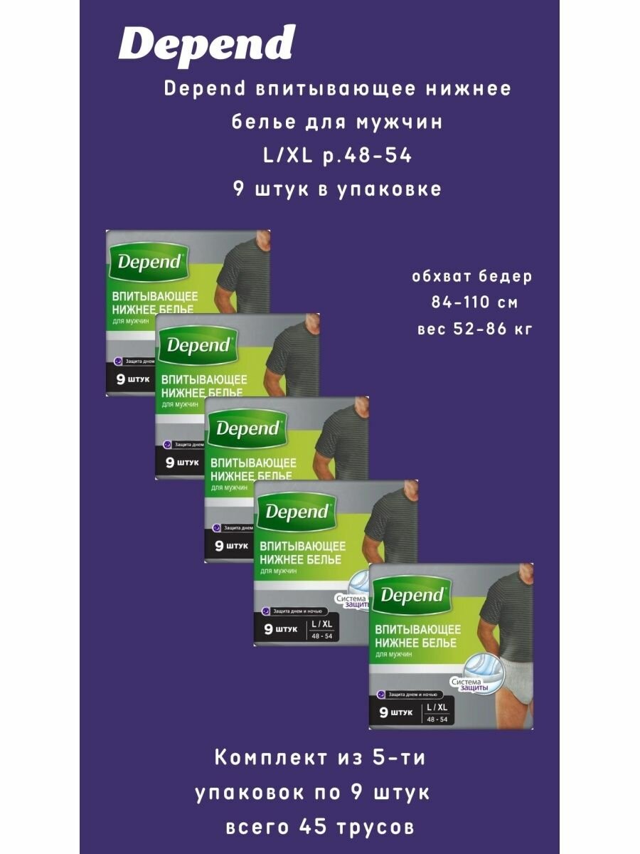 Впитывающее нижнее белье Depend/Депенд для мужчин L/XL (48-54) 9 шт.