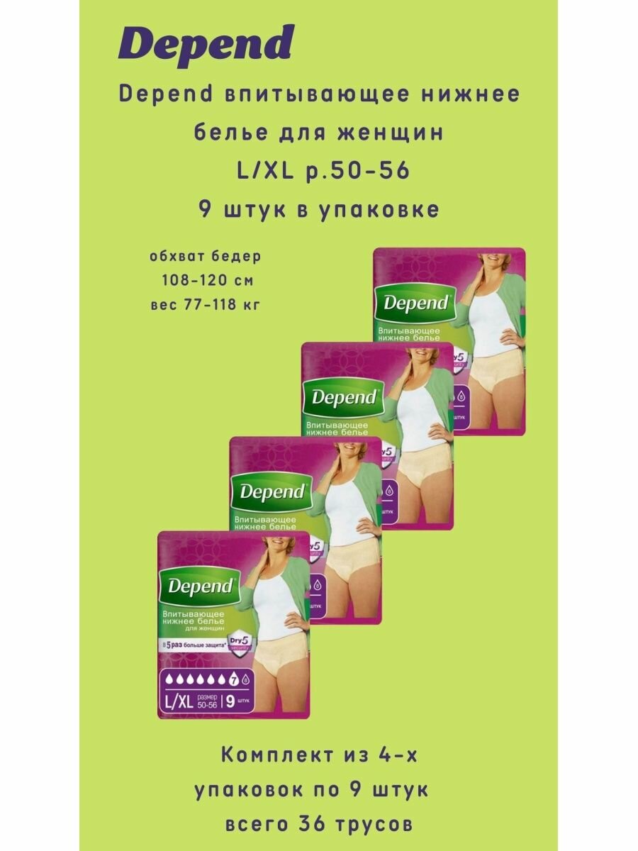 Белье впитывающее Depend, женское, размер L/XL (46-54), 9 шт.