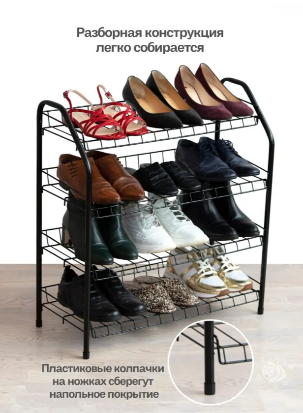 Этажерка для обуви разборная 4 полки 700*660*300 мм черный
