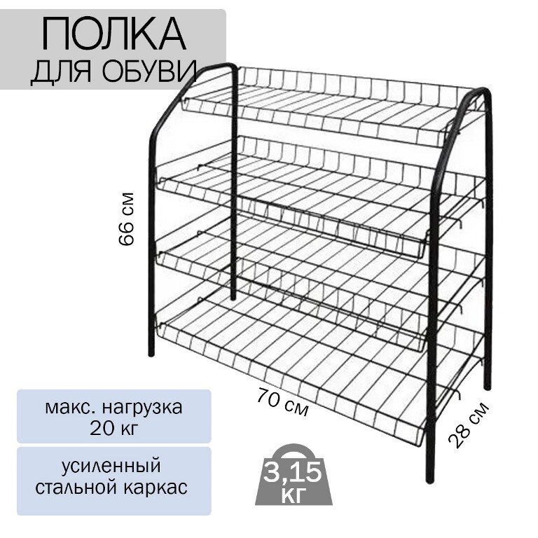 Полка для обуви, мет-л, 4 секц, 66х28х70 см, разборная, чер, Nika, ЭТ1/Ч