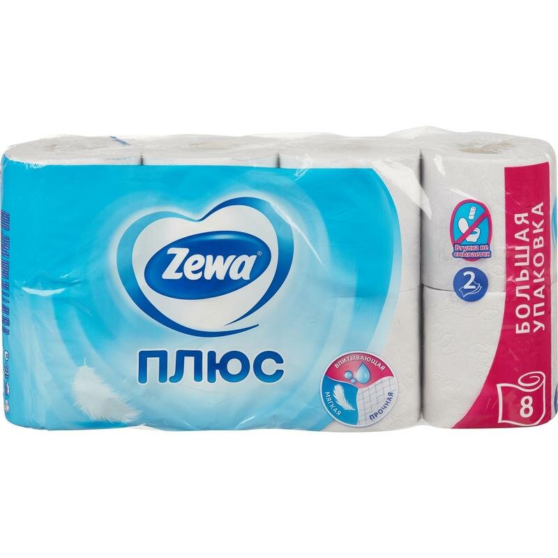 Туалетная бумага Zewa Плюс Белая, 2 слоя, 8 рулонов