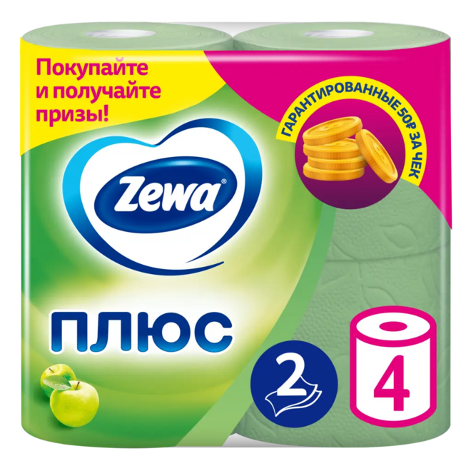 Туалетная бумага Zewa Плюс аромат «Яблоко», 2 слоя, 4 рулона