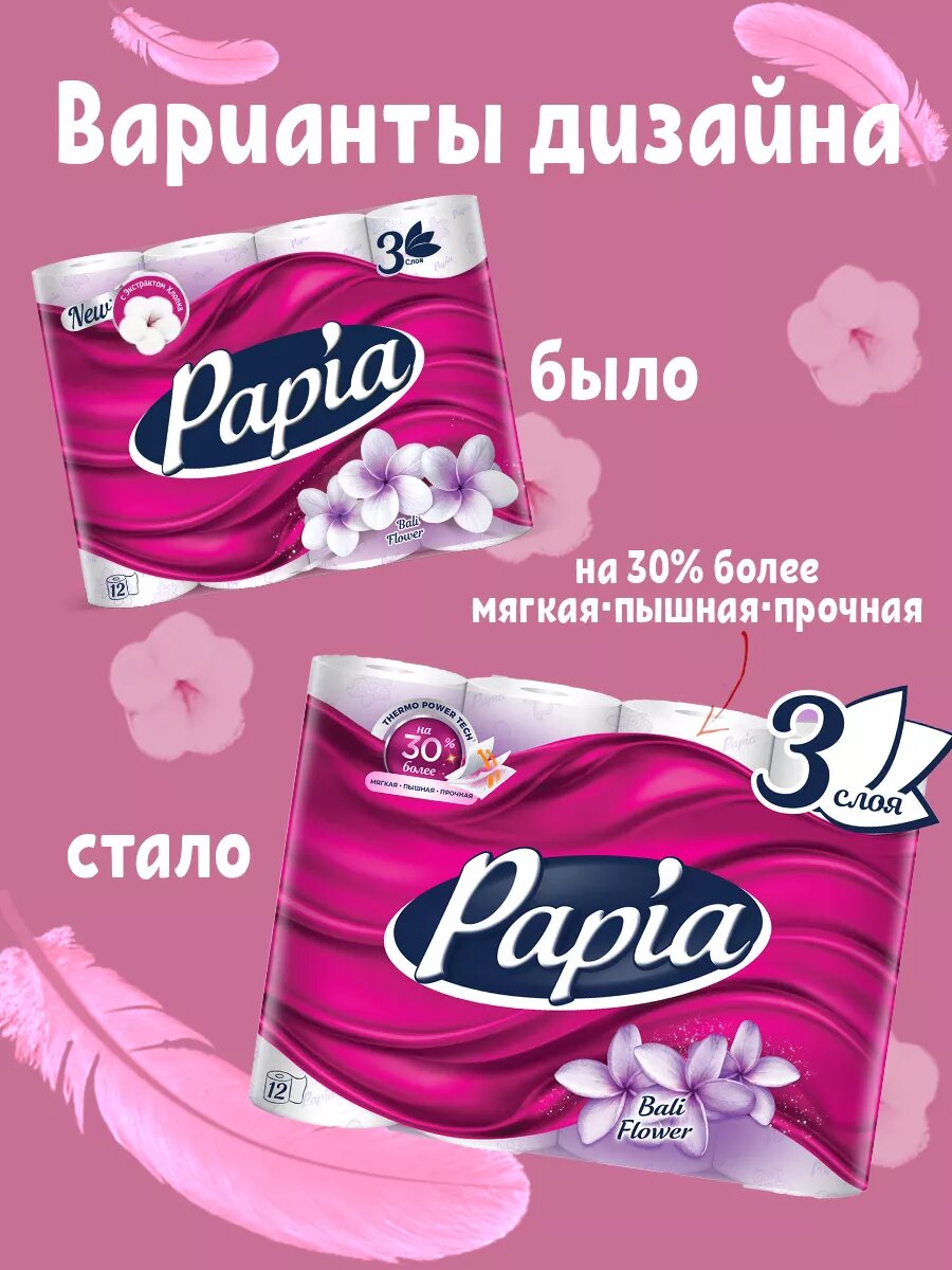 Papia Туалетная бумага трёхслойная Балийский Цветок 12 рулонов