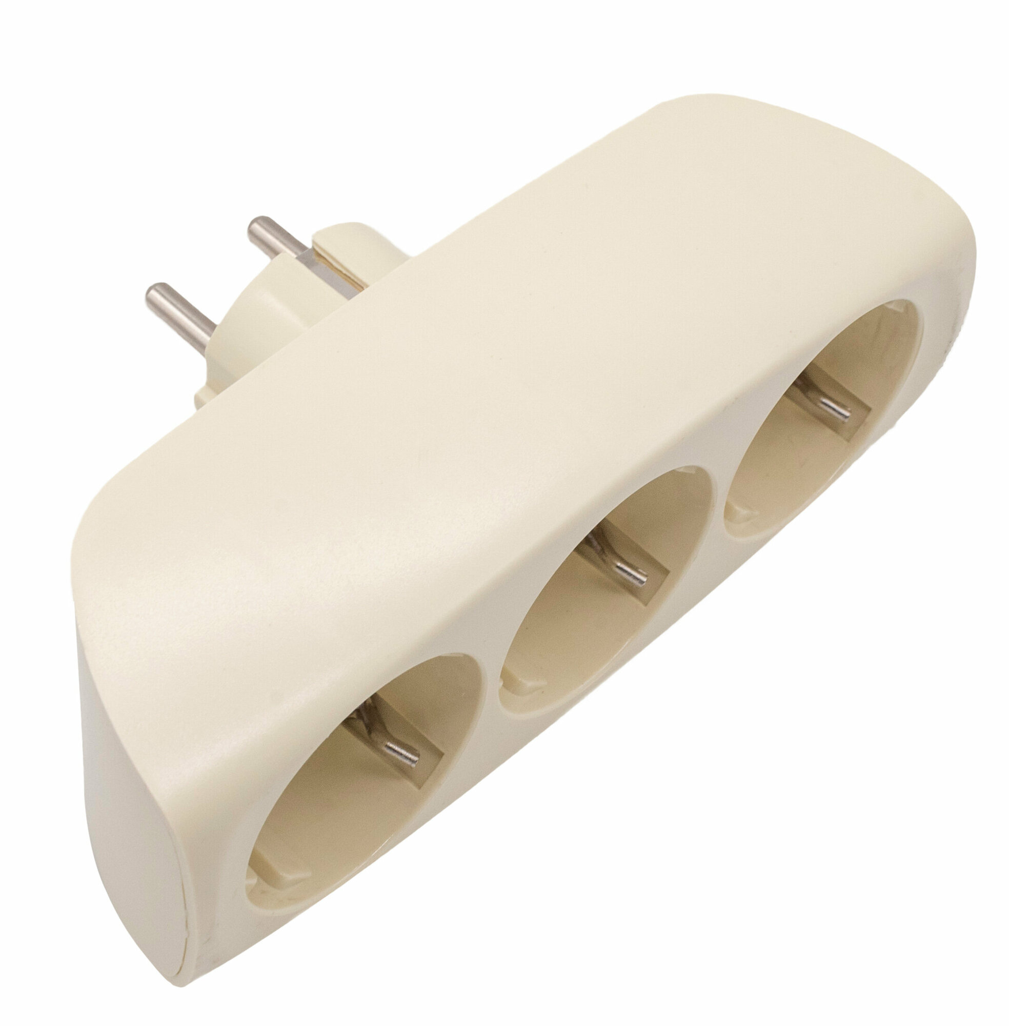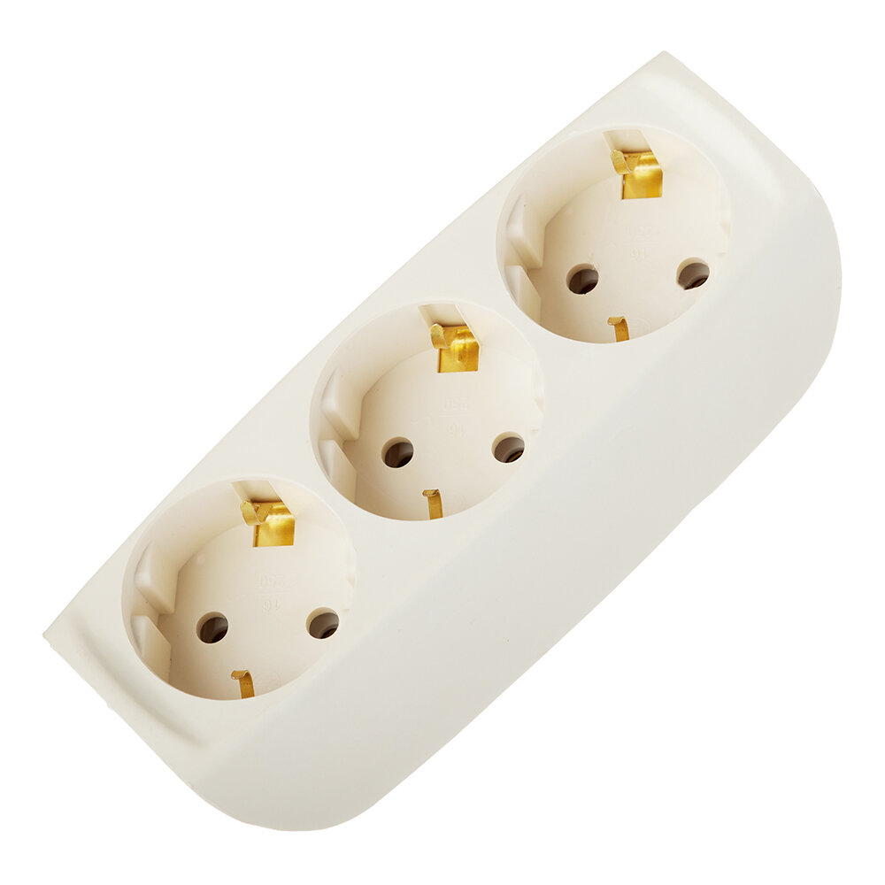 Тройник для розетки электрический с заземлением 16А, белый