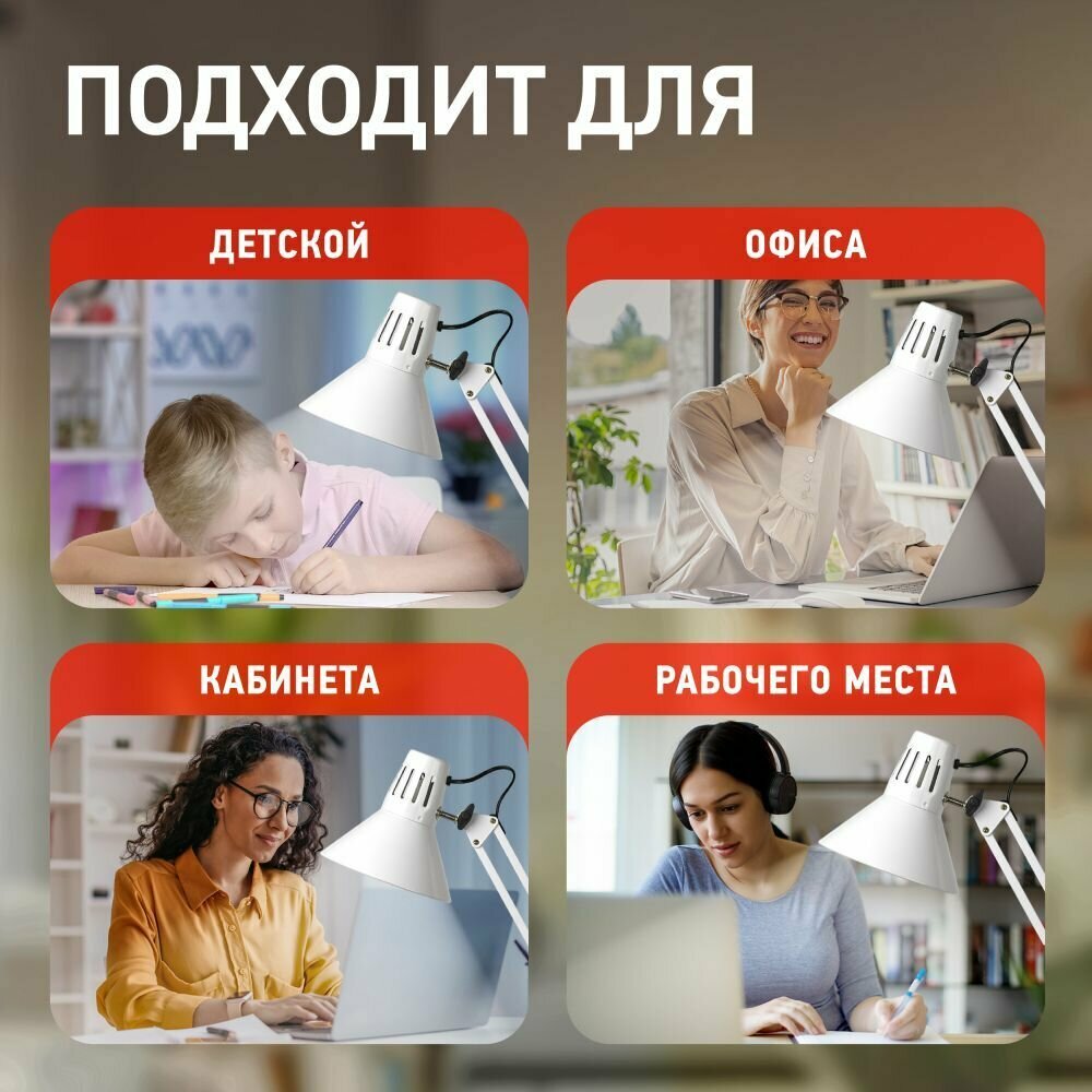 Лампа офисная ЭРА N-121-E27-40W-W, E27, 40 Вт, цвет арматуры: белый, цвет плафона/абажура: белый