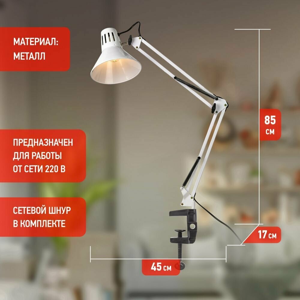 Лампа на струбцине ЭРА N-121-E27-40W-W белый IP20, арт. C0041455