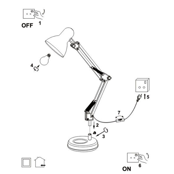 Лампа офисная Arte Lamp Junior A1330LT-1WH, E27, 40 Вт, белый