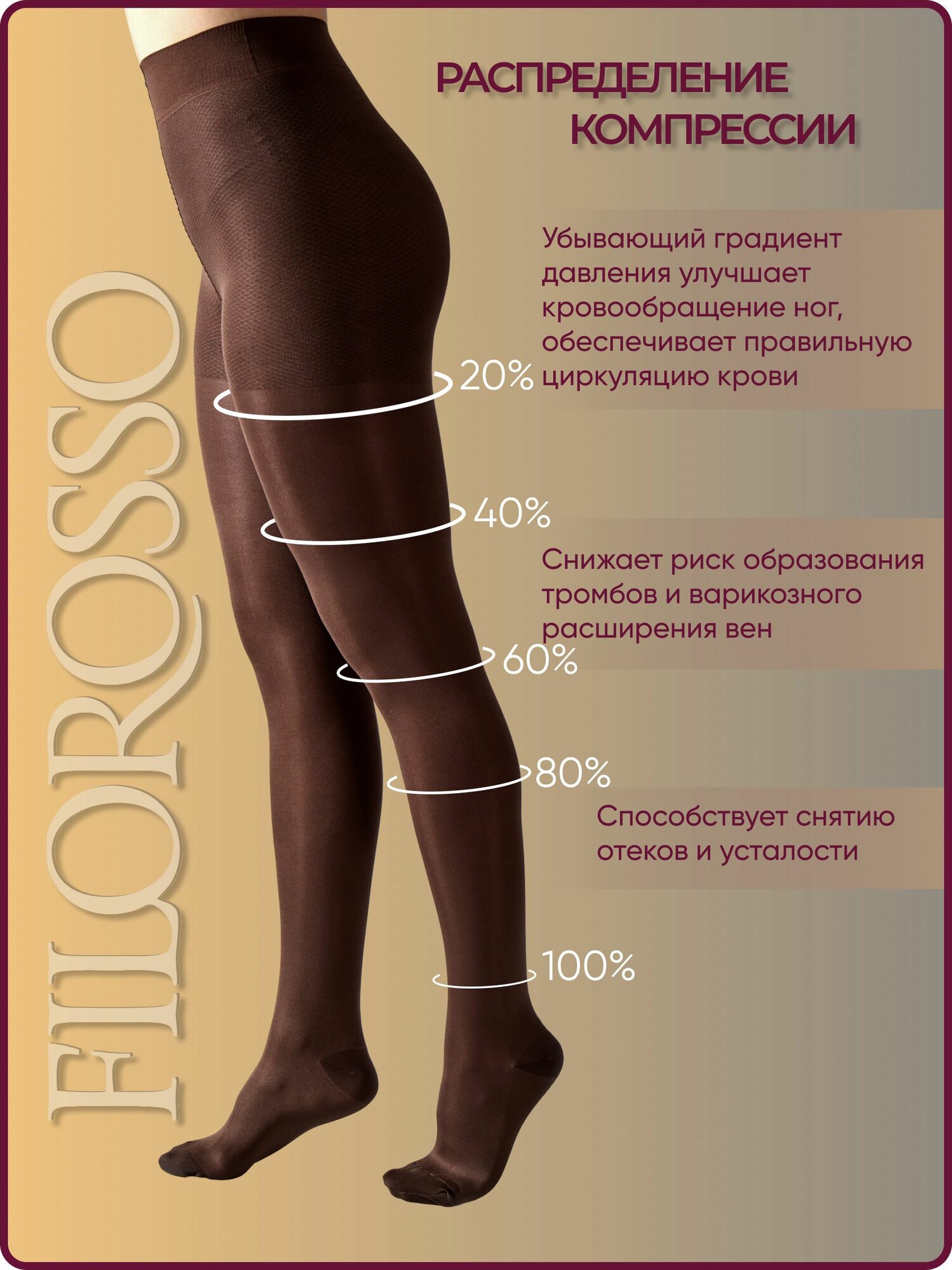 Колготки компрессионные Filorosso Terapia 140 den, 2 класс компрессии, кофе, размер 4