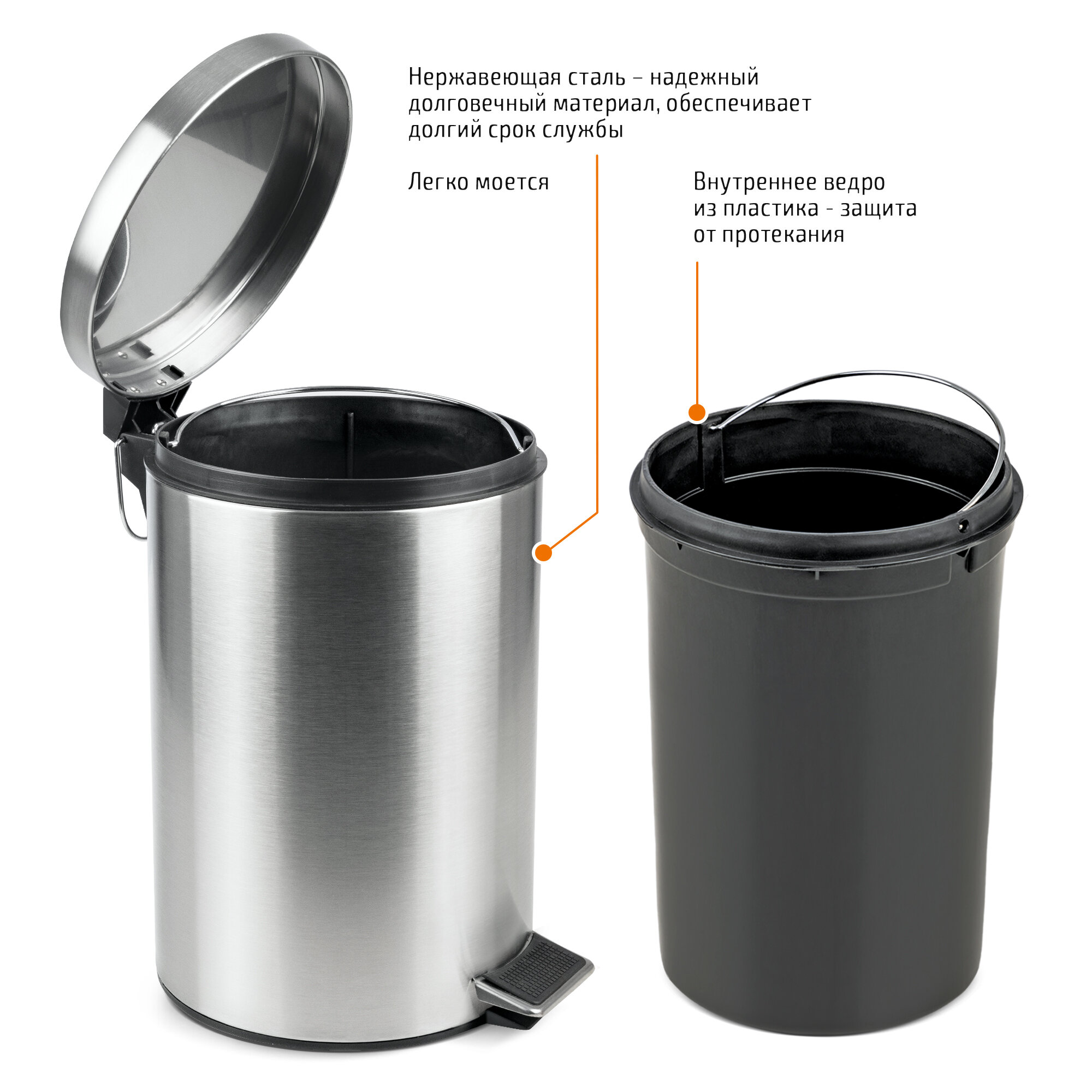 | Плюсы: | Отличное ведро, педаль работает хорошо, выглядит достойно |