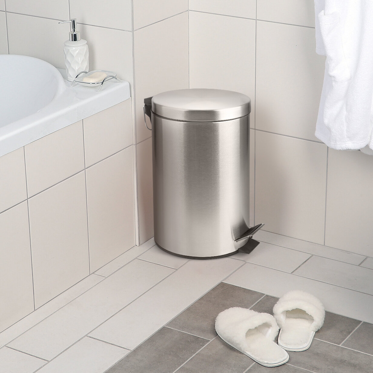 | Плюсы: | Выглядит отлично. Педалька работает хорошо, да же ребёнок с лёгкостью нажимает. Ведро вытаскивает, можно помыть. |