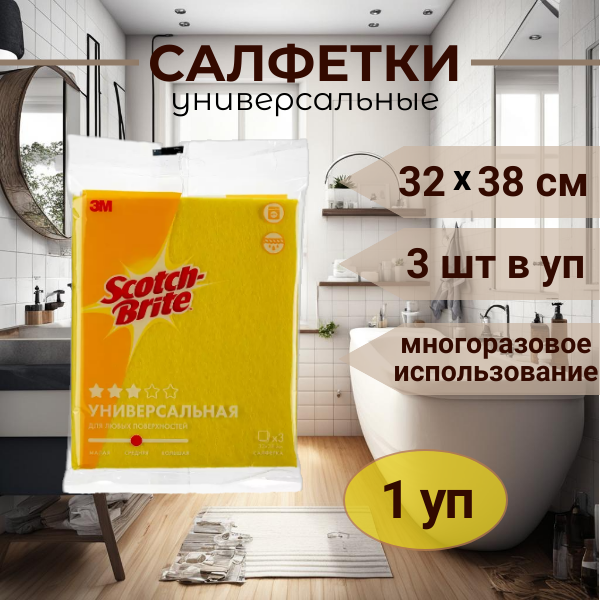 Салфетка для уборки Scotch-Brite оптима универсальная желтая 32см х 38 см, 1уп/3шт интересное: