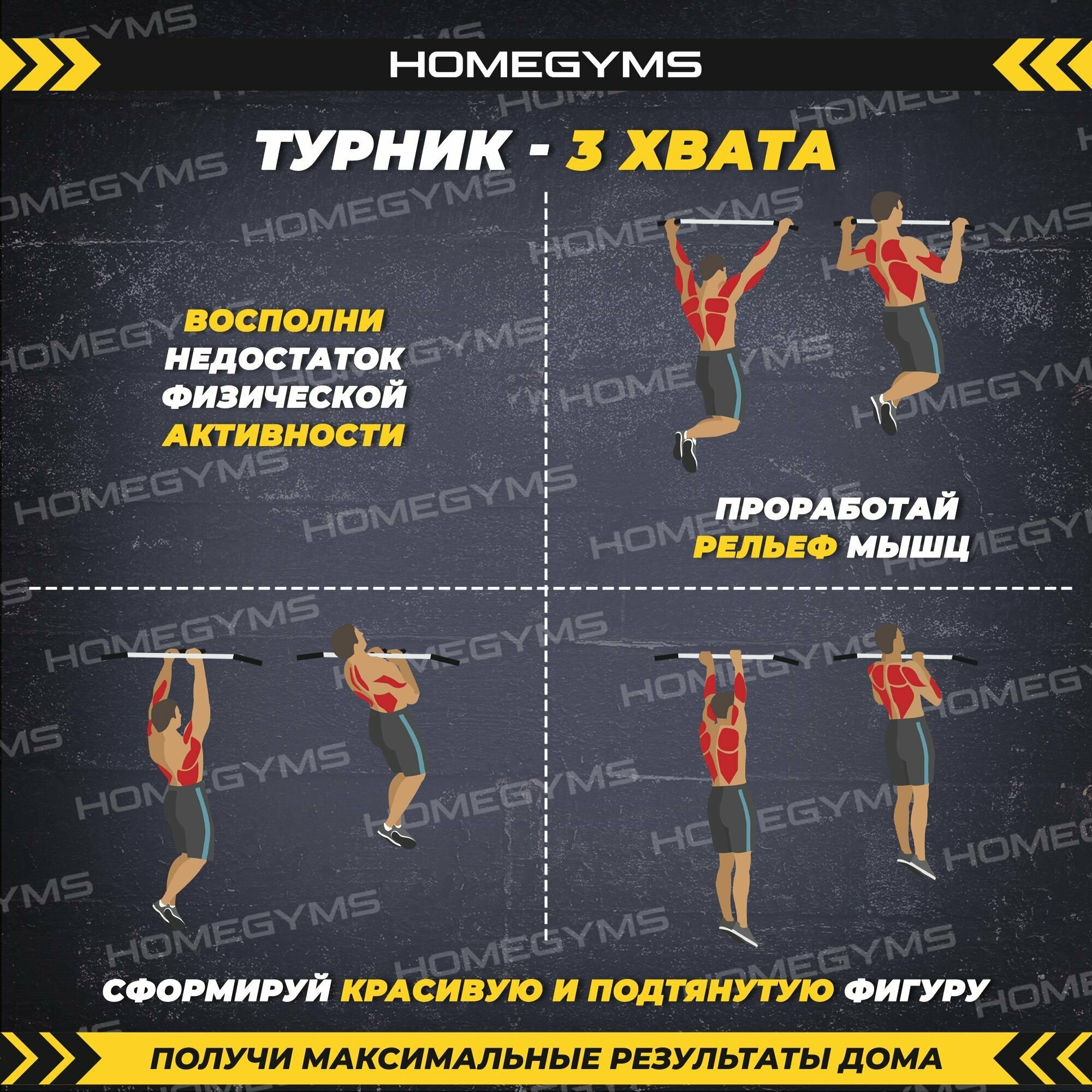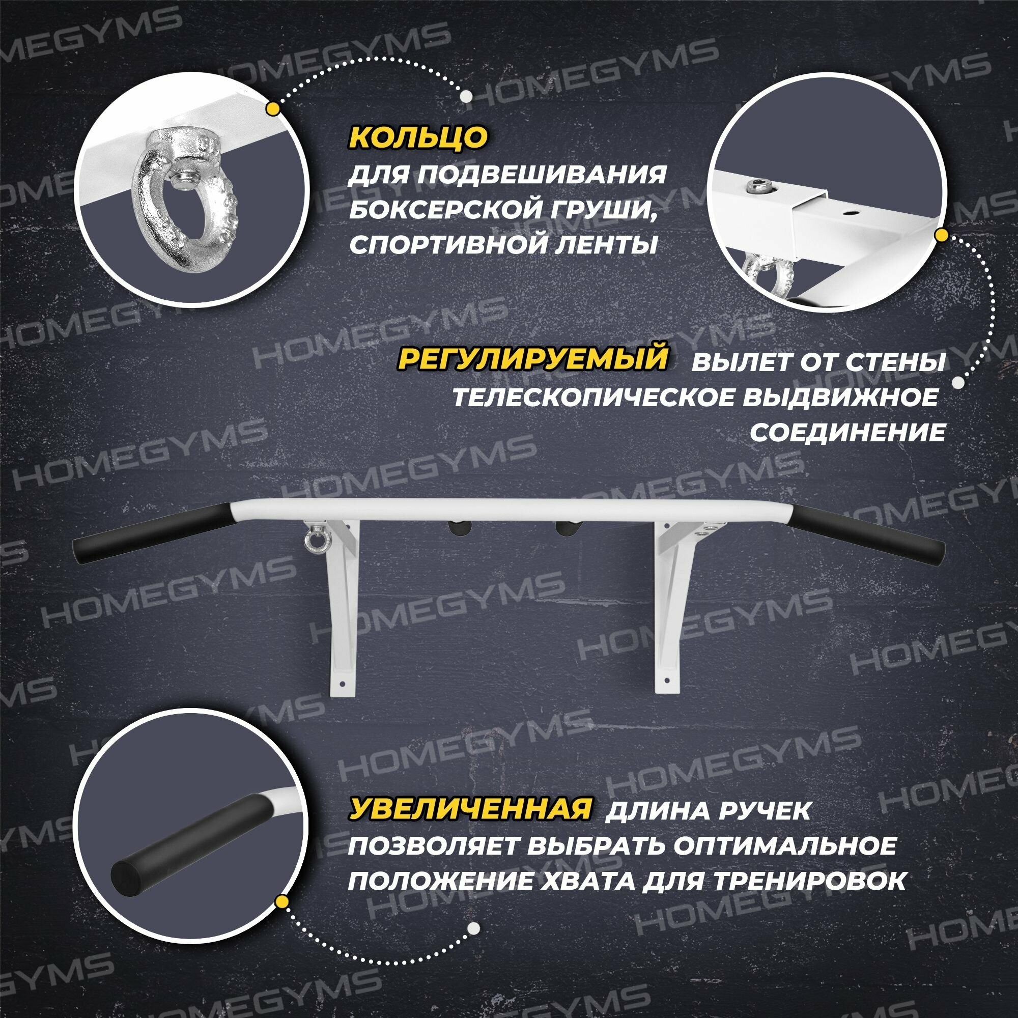Турник настенный HOMEGYMS, усиленный 3 хвата, белый интересное: