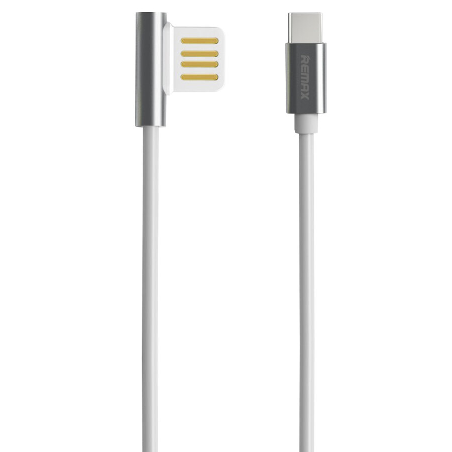 USB кабель Remax Emperor Series Cable RC-054a USB Type-C круглый пластиковые разьемы Г-образный, серебряный