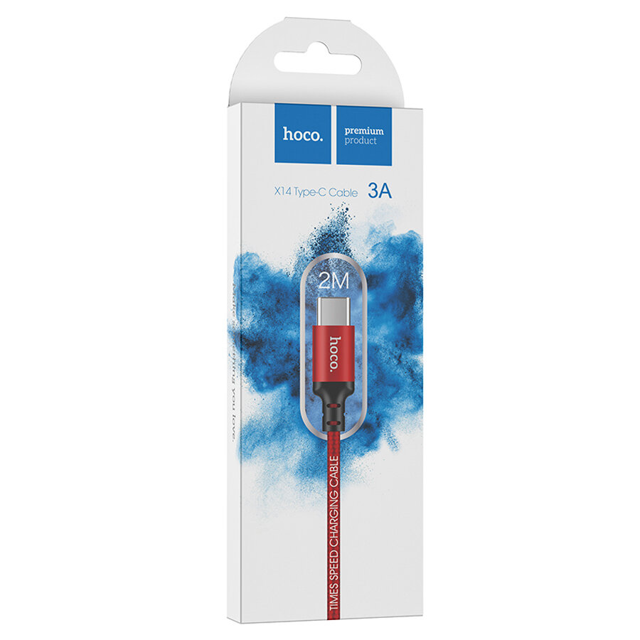 Кабель Hoco X14 Times Speed, Type-С - USB, 3 А, 2 м, черно-красный