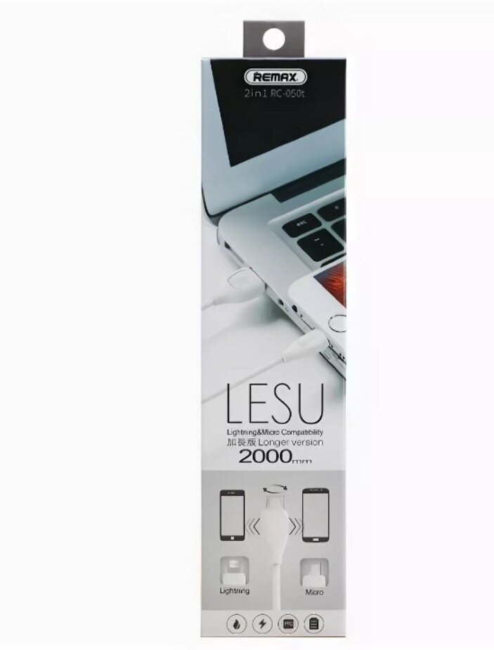 USB кабель REMAX Lesu 2 in 1 Series Cable RC-050t для Apple 8 pin/Micro USB (белый)