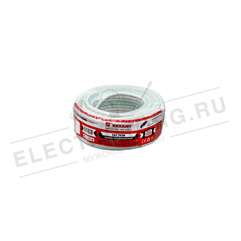 Кабель для ТВ REXANT SAT 703 B, Cu/Al/Cu, 75%, 75 Ом, бухта 100 м, белый 01-2431