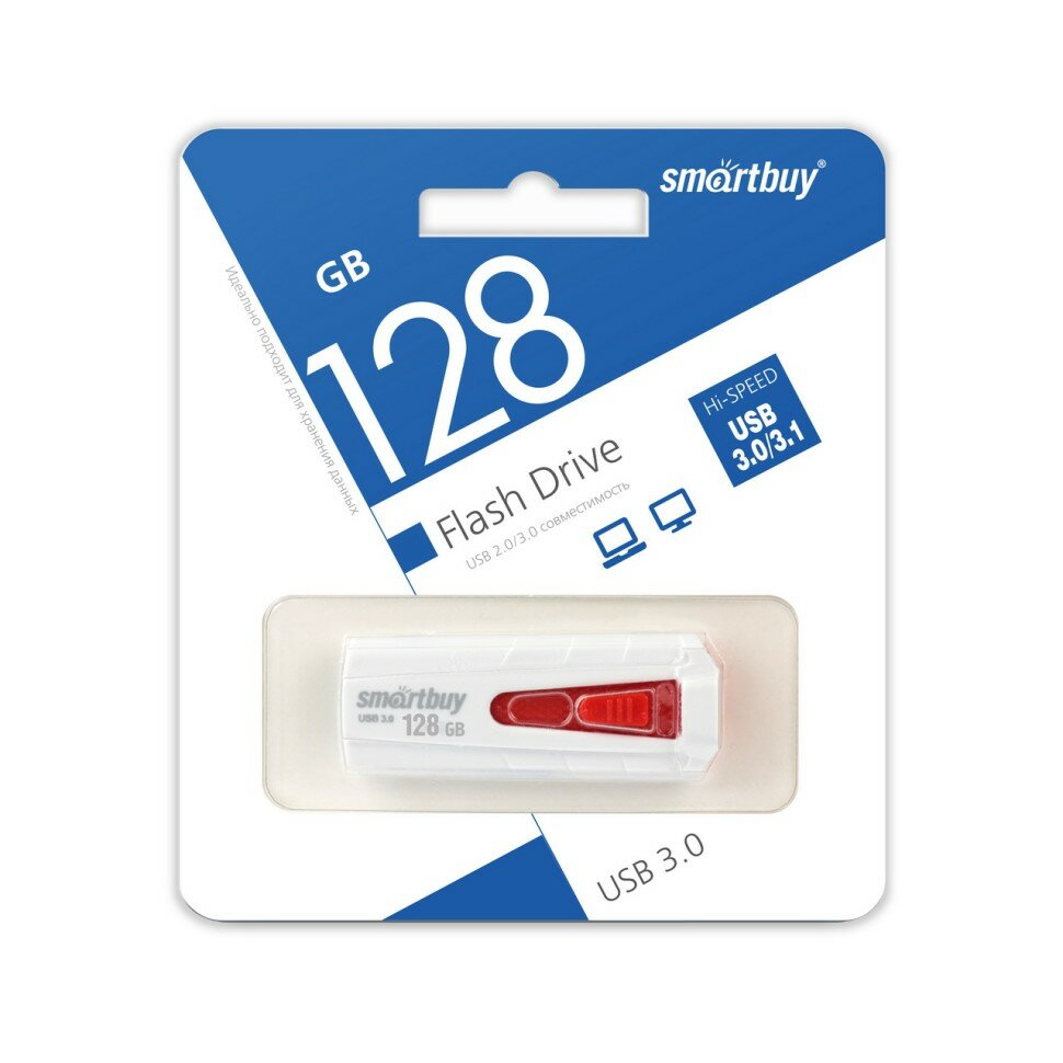 Флеш-карта SmartBuy 128 гб Iron USB 3,0, бело-красная (SB128GBIR-W3)