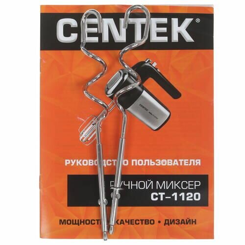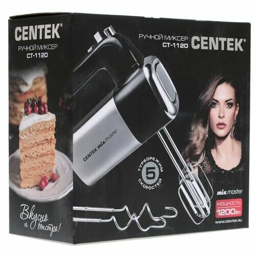 Centek Миксер (черн/сталь) 1200Вт, 5 скоростей+турбо, взбивание/замешивание CT-1120