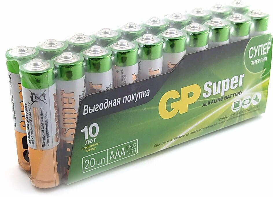Батарейка GP Super Alkaline AAA, в упаковке: 20 шт.