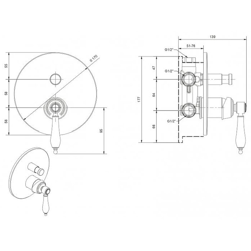 Cezares Встраиваемый смеситель для душа APHRODITE-VDIM2-01-Bi