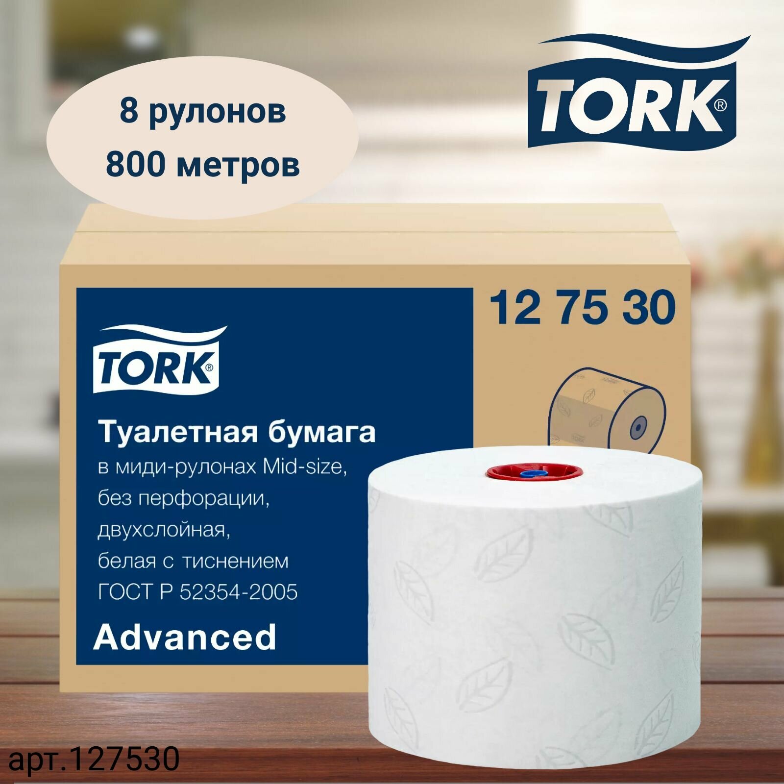 Купить Туалетная бумага Tork Mid-size Advansed, в рулонах, система T6, 100 м, 2 сл., белая, 8 рулонов (арт: 127530)