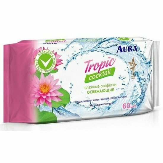 AURA Tropic Cocktail Освежающие влажные салфетки 60 шт, в ассортименте
