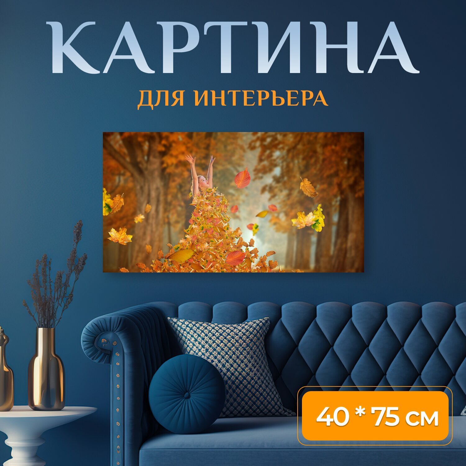 Картина на холсте "Падение, листья, осенние листья" на подрамнике 75х40 см. для интерьера интересное: