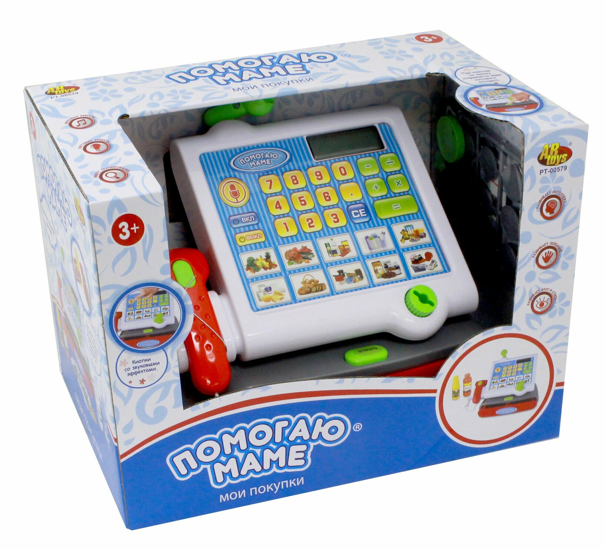 Касса "Помогаю Маме" в наборе с продуктами, на батарейках, 13 предметов Abtoys PT-00579