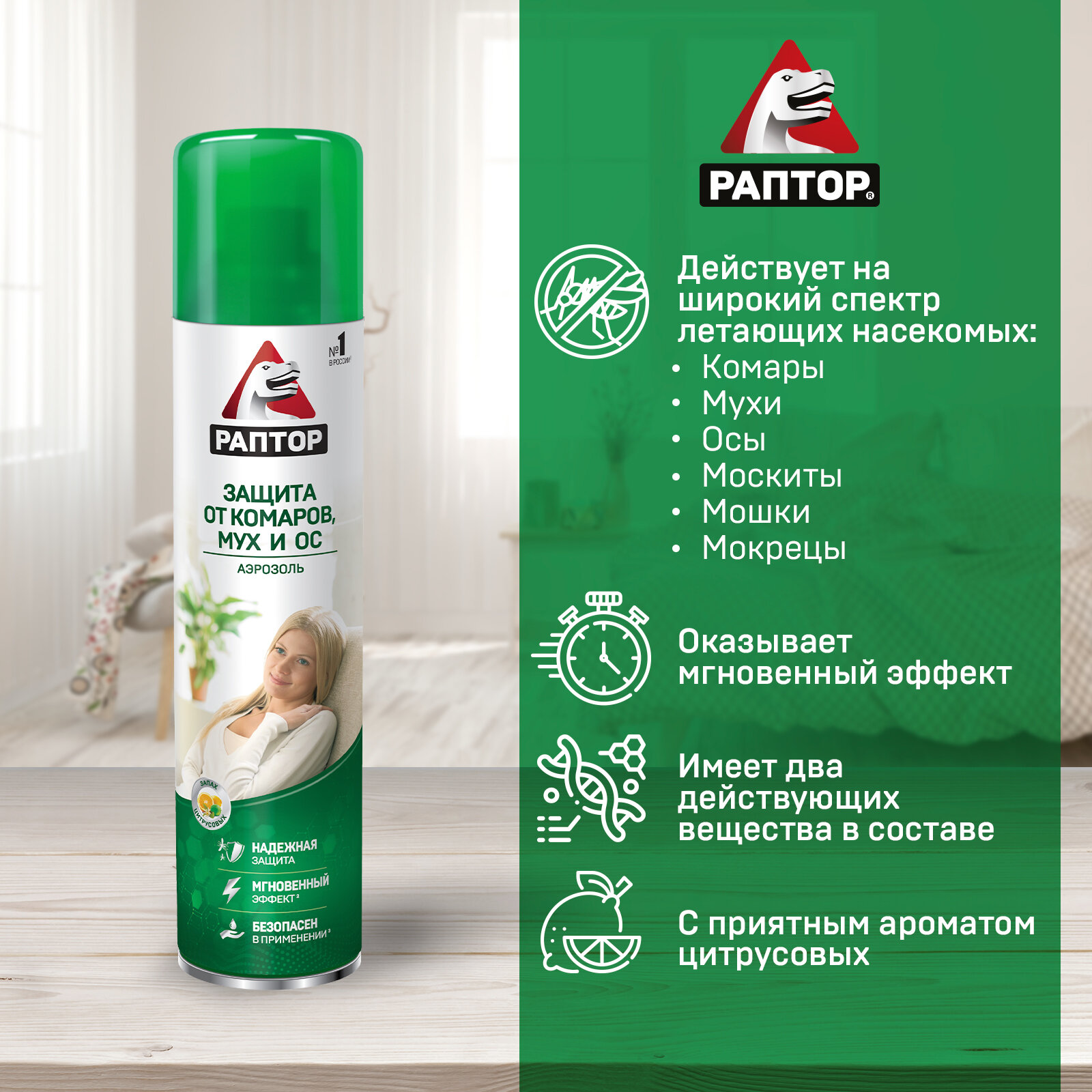 Купить Аэрозоль от летающих насекомых Раптор с запахом цитрусовых, 275 мл (A1643)