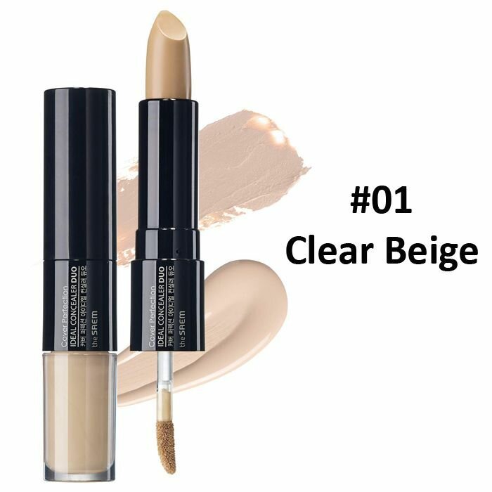 The Saem Двойной консилер для маскировки недостатков кожи 4,2 г + 4,5 мл Cover Perfection Ideal Concealer Duo, оттенок 01 Clear Beige