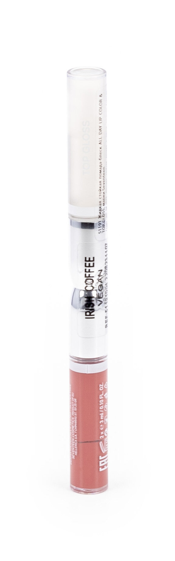 Seventeen / Севентин Губная помада-блеск All Day Lip Colour & Top Glos тон 04 Irish Coffee, жидкая, стойкая, 6мл / декоративная косметика