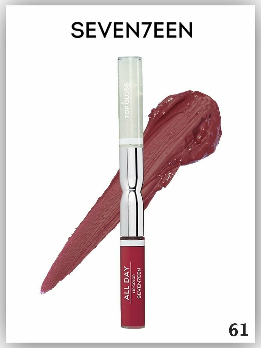 Жидкая стойкая помада-блеск ALL DAY LIP COLOR & TOP GLOSS № 61