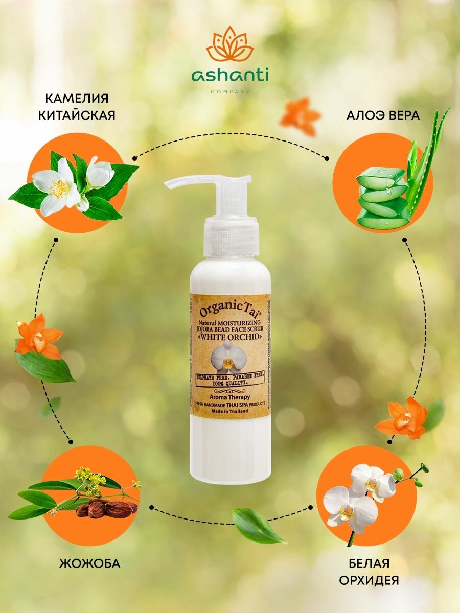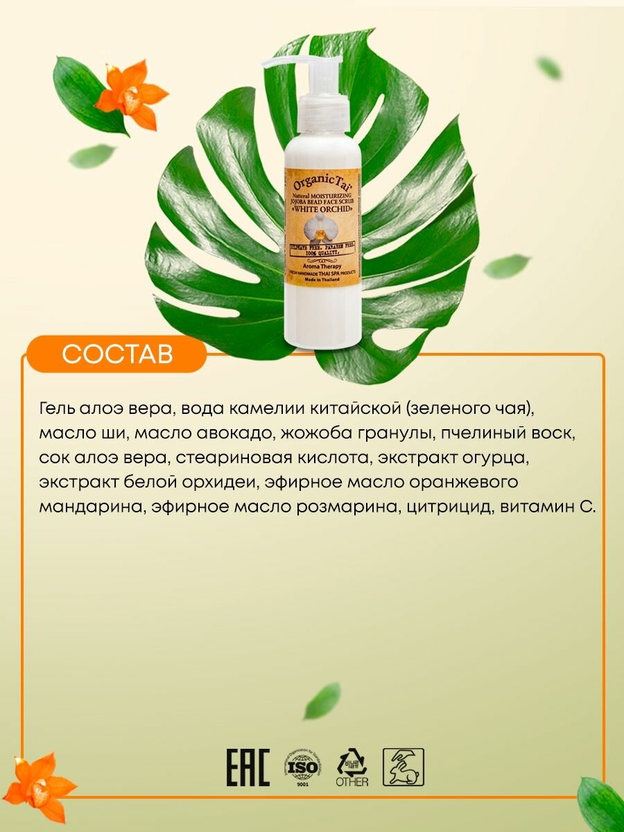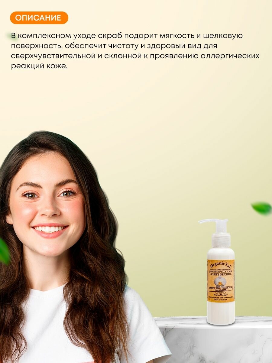 Натуральный увлажняющий скраб для лица с гранулами жожоба «БЕЛАЯ орхидея», 120 г, OrganicTai