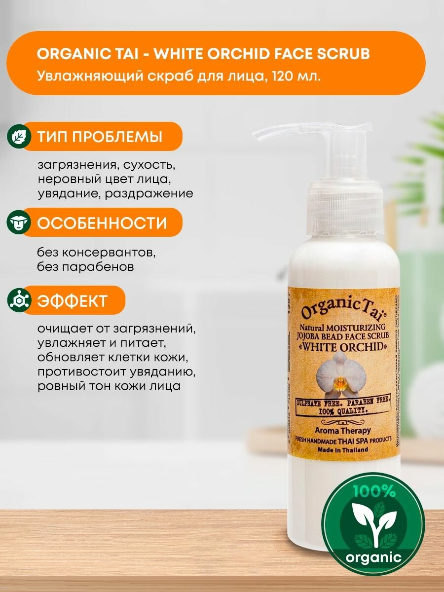 Organic Tai Скраб для лица Organic Tai " Белая орхидея" с гранулами жожоба, увлажняющий ,120 мл