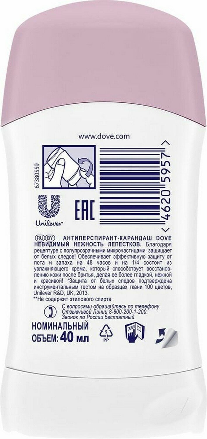 СохранитьАнтиперспирант-дезодорант стик Dove Невидимый Нежность лепестков, 40 мл интересное: