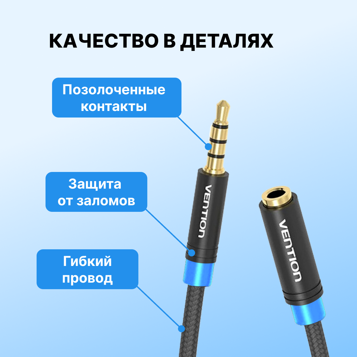 Кабель-удлинитель Vention аудио Jack 3,5 mm M/Jack 3,5 mm F - 1 м